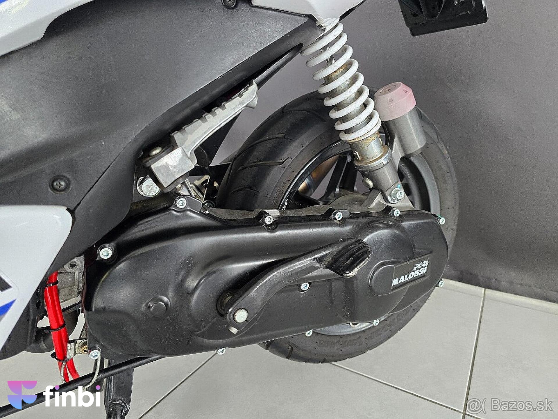 valec Malossi 70 MHR Team 2, kluka Stage 6 HPC, prevody Malossi overrange kit, karburátor Dellorto 21, filter Polini, výfuk Yasuni, manuálny sitič, prídavné dva chladiče, pneumatiky Dunlop, digitálny otáčkomer a teplomer, motohodiny, predný kotúč Polini, LED žiarovka v prednom svetle